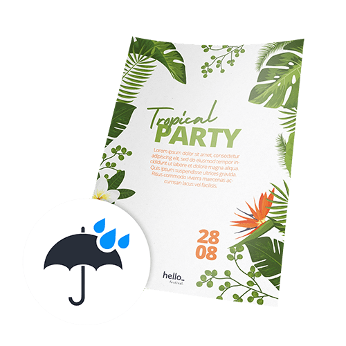 Do you need water resistant promotion items for your outdoor event? At JAMROLL we print waterproof posters on 170 gsm polyester paper, so they are perfect for outdoor festivals and events! Thanks to a special production technique, these outdoor posters are extra solid and have a water resistant layer, so your posters will definitely survive the weather and have an expanded lifetime!